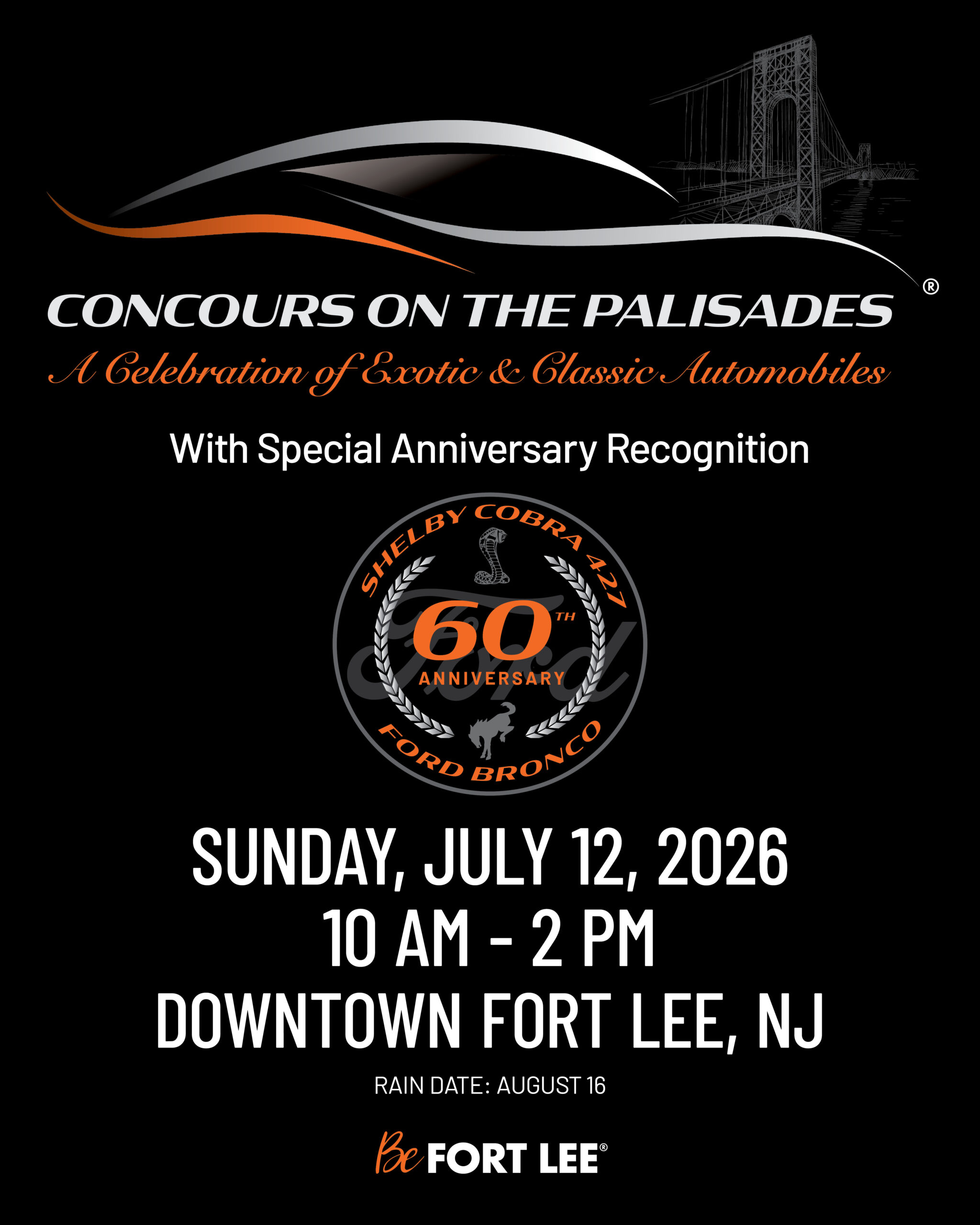 Concours on the Palisades celebrates the finest in luxury, exotic and vintage automobiles. Downtown Fort Lee will host a collection of more than 100 luxury and exotic cars, from vintage classics to the newest and most advanced high-powered vehicles on the road today.